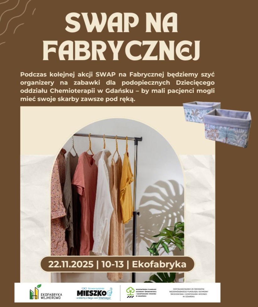 Pierwsza akcja odbędzie się 22.11.2025r. w godzinach 10:00-13:00 w Ekofabryce, poniżej plakat akcji oraz odnośnik do wydarzenia na FB.