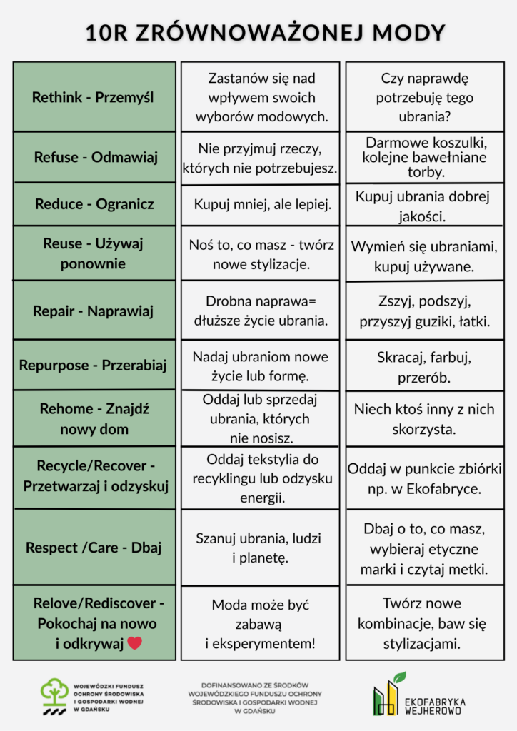 Ekofabryka Wejherowo Sp. z o.o. otrzymała dotację z Wojewódzkiego Funduszu Ochrony Środowiska i Gospodarki Wodnej w Gdańsku na realizację zadania pn.Świadomy konsument – dbaj, naprawiaj, noś dłużej.
